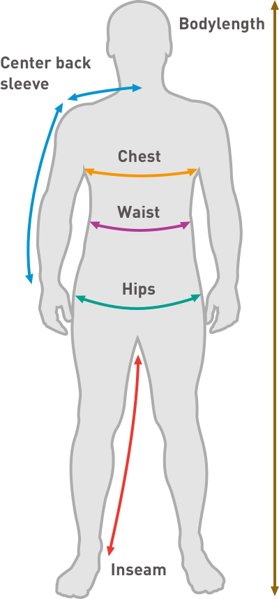 Aby dokładnie ustalić rozmiar niezbędny do zamówienia odzieży należy zmierzyć się i porównać wymiary swojego ciała z wymiarami podanymi w tabeli.